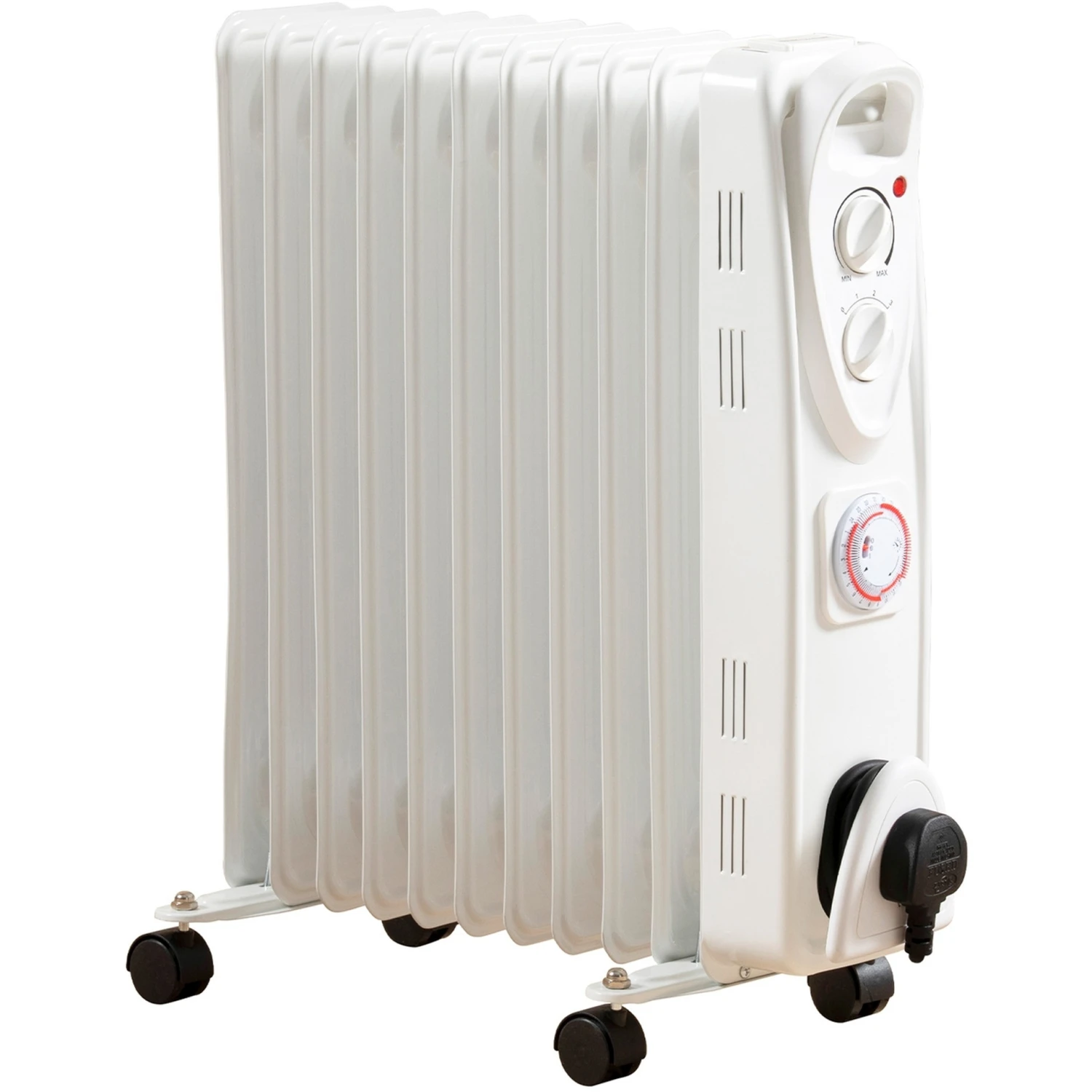 This powerful and portable Daewoo oil filled radiator is the perfect solution to warm up a home, garage, workshop or office.