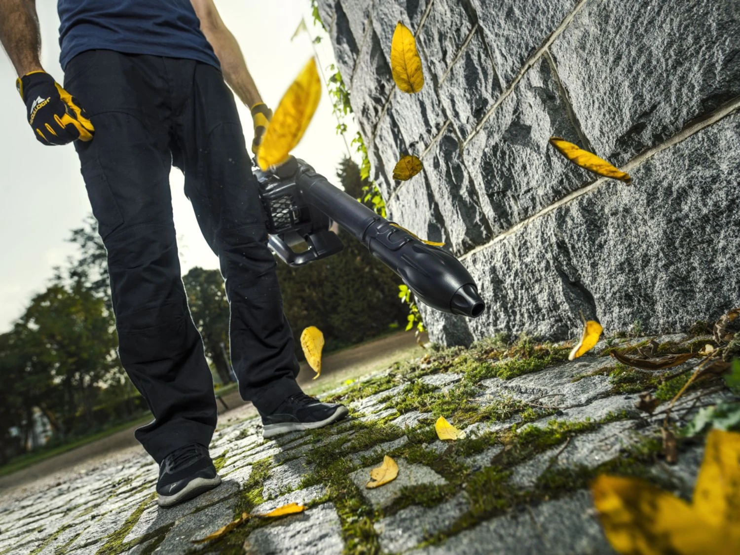 - Mulches leaves
